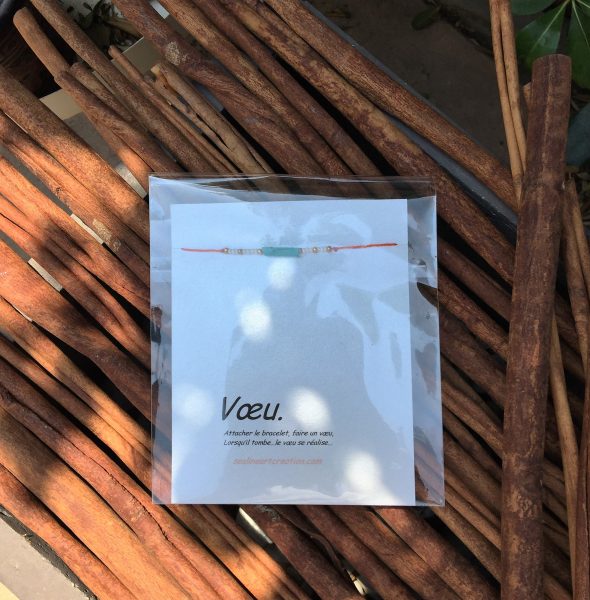 Le bracelet de vœu est un bijou éphémère fait d’un fil de coton sur lequel viennent des sujets marins, nacre, petit coquillage, petit bijou représentant la mer…parfois de véritables pierres semi précieuses, ou encore une perle de culture.
